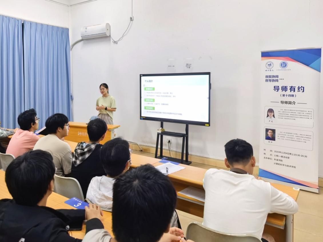 2025年11月4日晚上,朴诚书院举办“导师有约(第14期)”,计算机科学与技术学院严岚副研究员、杜欣讲师应邀来到学生社区,与2025级新生进行面对面交流,活动由朴诚书院辅导员许煌宇主持