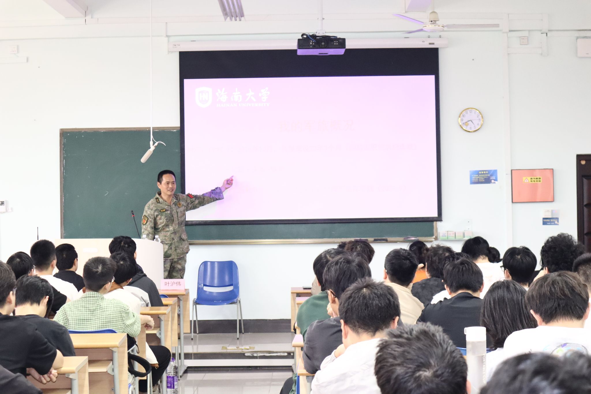 叶沪伟结合自身的军旅经历,向同学们展示了军队职业发展道路,并从部队对人才的专业需求等方面着重做了分享。