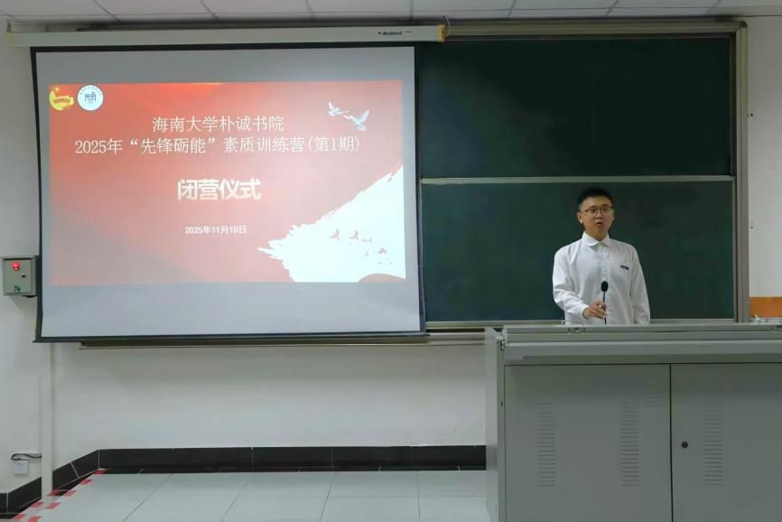 2025年11月10日中午,朴诚书院2025年“先锋砺能”素质训练营(第1期)闭营仪式在7-201教室举行。朴诚书院党委副书记闫治、学工办(团委)主任(书记)张红运、辅导员冯春莹和全体营员参加仪式,仪式由朴诚书院团委副书记(学生)颜世彬主持。