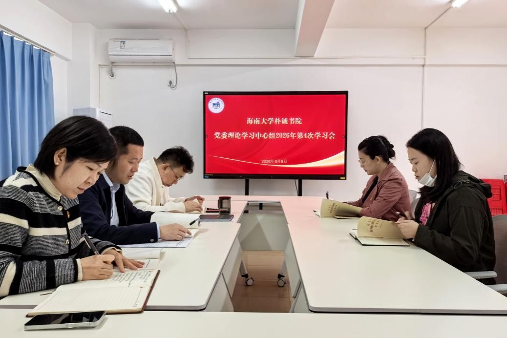2026年3月5日上午,朴诚书院党委在B栋二楼会议室召开理论学习中心组2026年第4次学习会。朴诚书院党委书记易振主持会议,党委副书记闫治和党委委员李洋、贾宝莹参加会议。