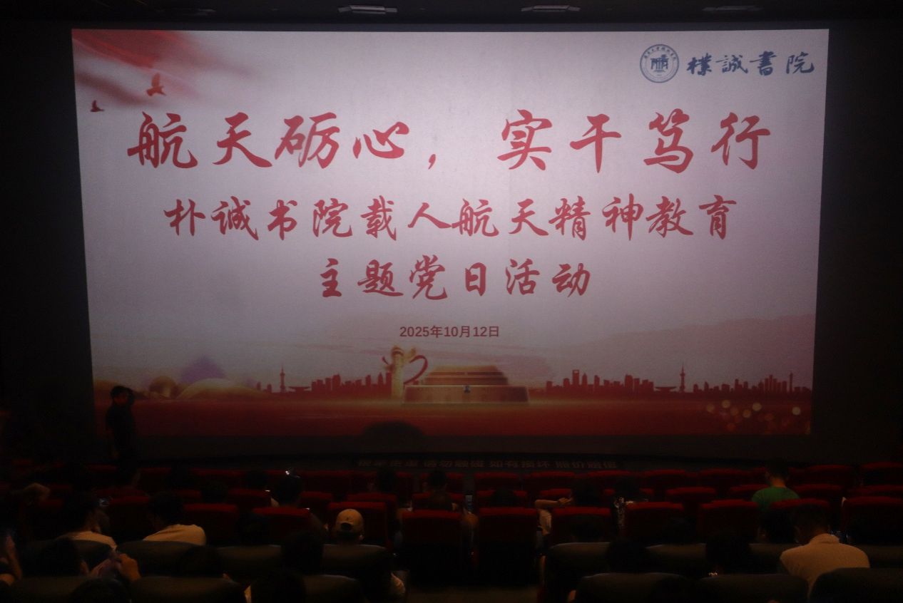 为激发广大师生的爱国热情与科研报国志向,大力弘扬“特别能吃苦、特别能战斗、特别能攻关、特别能奉献”的载人航天精神,2025年10月12日上午,朴诚书院开展“光影铸心”(第19期)暨载人航天精神教育主题党日活动,集中观看影片《窗外是蓝星》。