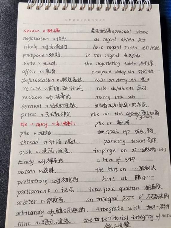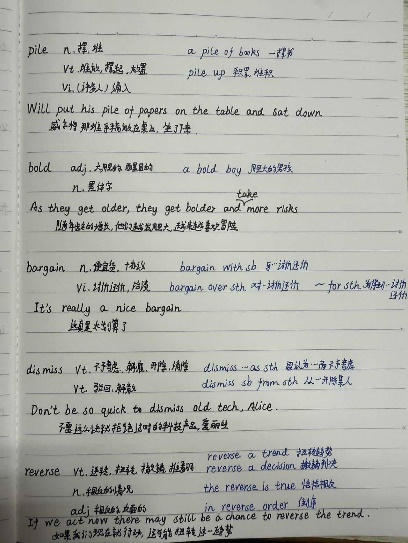 打卡的笔记中,有的同学用清晰字迹梳理单词词性与搭配,有的同学在例句旁标注核心用法,还有同学用符号区分新学与复习词汇,条理分明的页面成为21天坚持的生动缩影。
