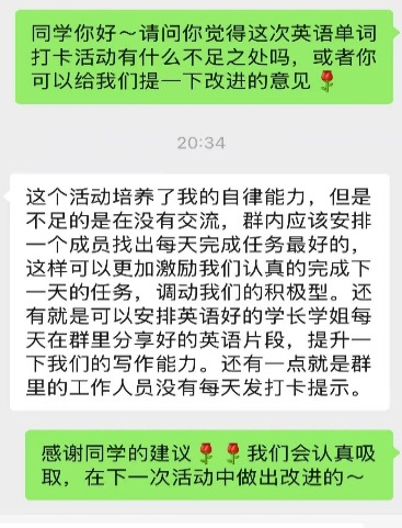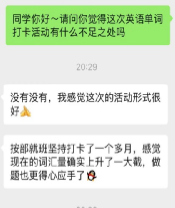 有些参与的同学表示,每日打卡有效克服了拖延症,帮助自己养成持续学习的习惯,词汇储备量也显著提升。