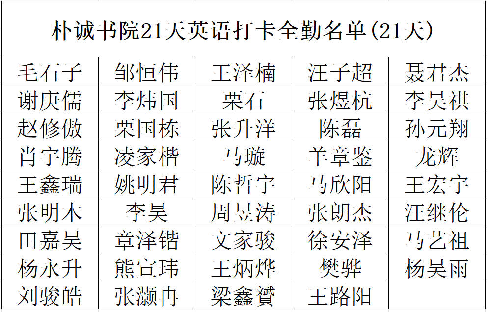 2025年11月1日至21日,朴诚书院“21天英语单词打卡”活动顺利开展。活动中,同学们积极参与每日学习,通过单词背诵、口语跟读、复习巩固等多元形式,在线上平台记录学习轨迹。从基础词汇积累到实用句型练习,同学们循序渐进夯实英语基础,不少同学能够坚持全勤打卡,以良好的自律意识和学习韧性,将碎片化时间转化为扎实的英语能力。