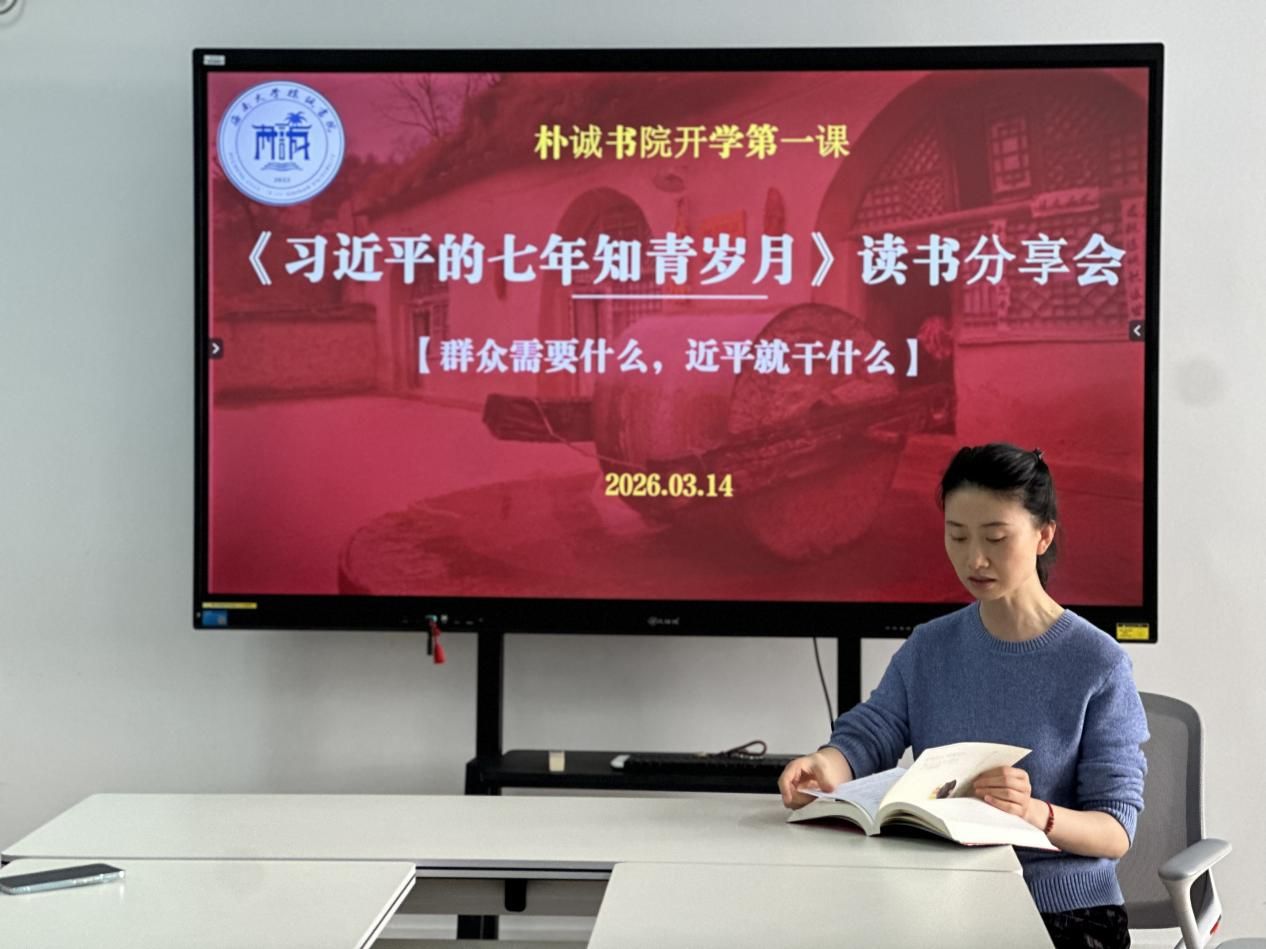 2026年3月14日,朴诚书院开展“悦读悦享”主题读书分享会,品读《习近平的七年知青岁月》。本次读书分享会由辅导员王杜娟主持,30余名学生参加。